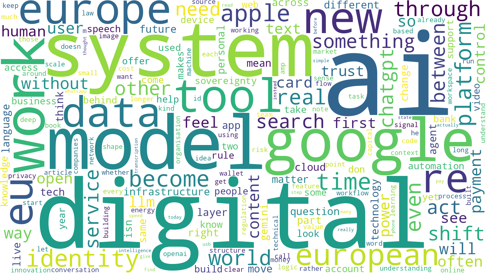 Midway through the year, it became clear that the accumulated writing needed better internal structure. A new taxonomy emerged. Some themes were sharpened, others explicitly named: European digital sovereignty, the future of work, finance and payment systems, and more foundational questions around infrastructure and agency.