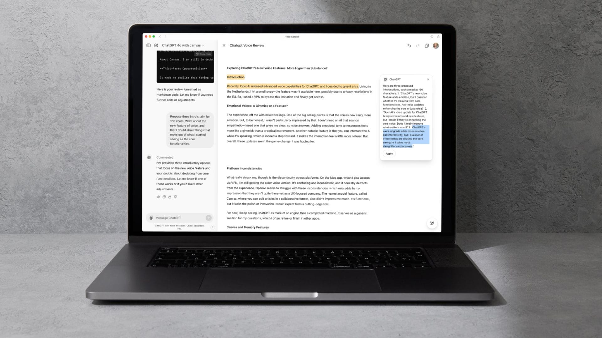 What really struck me, though, is the discontinuity across platforms. On the Mac app, which I also access via VPN, I’m still getting the older voice version. It’s confusing and inconsistent, and it honestly detracts from the experience.