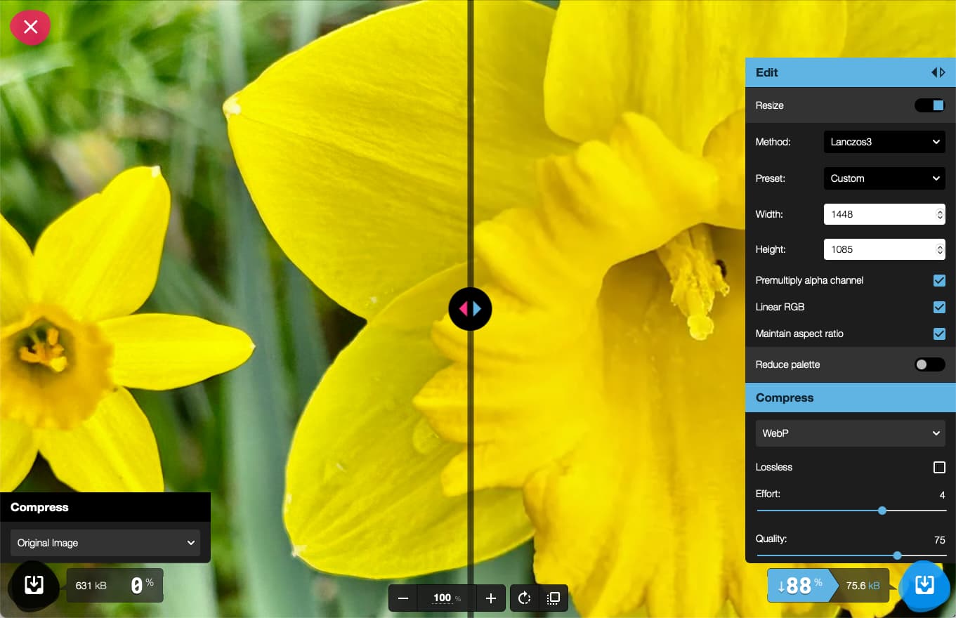 Squoosh is a web-based image optimization tool that allows you to compress your images for use on the web. The app was developed by Google and is available for free on the web.