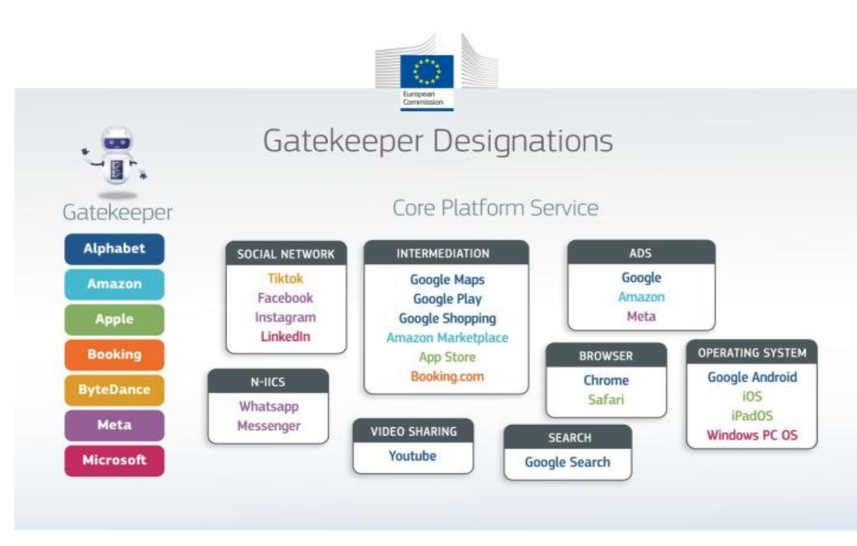 Most platforms designated as gatekeepers under the DMA are also very large online platforms (VLOPs) under the DSA. These include Alphabet (Google), Meta, Amazon, Apple, ByteDance (TikTok), and Microsoft. - Transparency and disclosure obligations