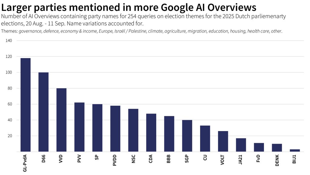 Researchers found that some political parties appeared more often in Google’s AI-generated answers.