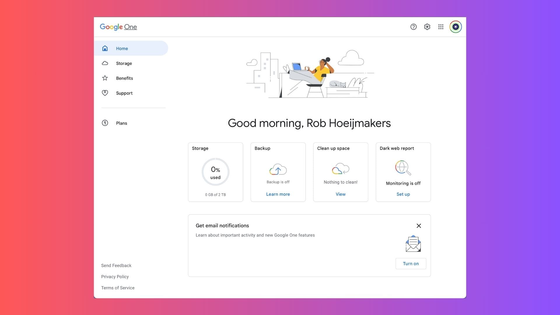 Integrating this setup with Google One's Family Plan has been a game-changer. At no additional cost, it provides 2TB of storage and premium features for Google Meet, not to mention the branding opportunities it affords to my domain through Google Calendar and Google Scheduling options.