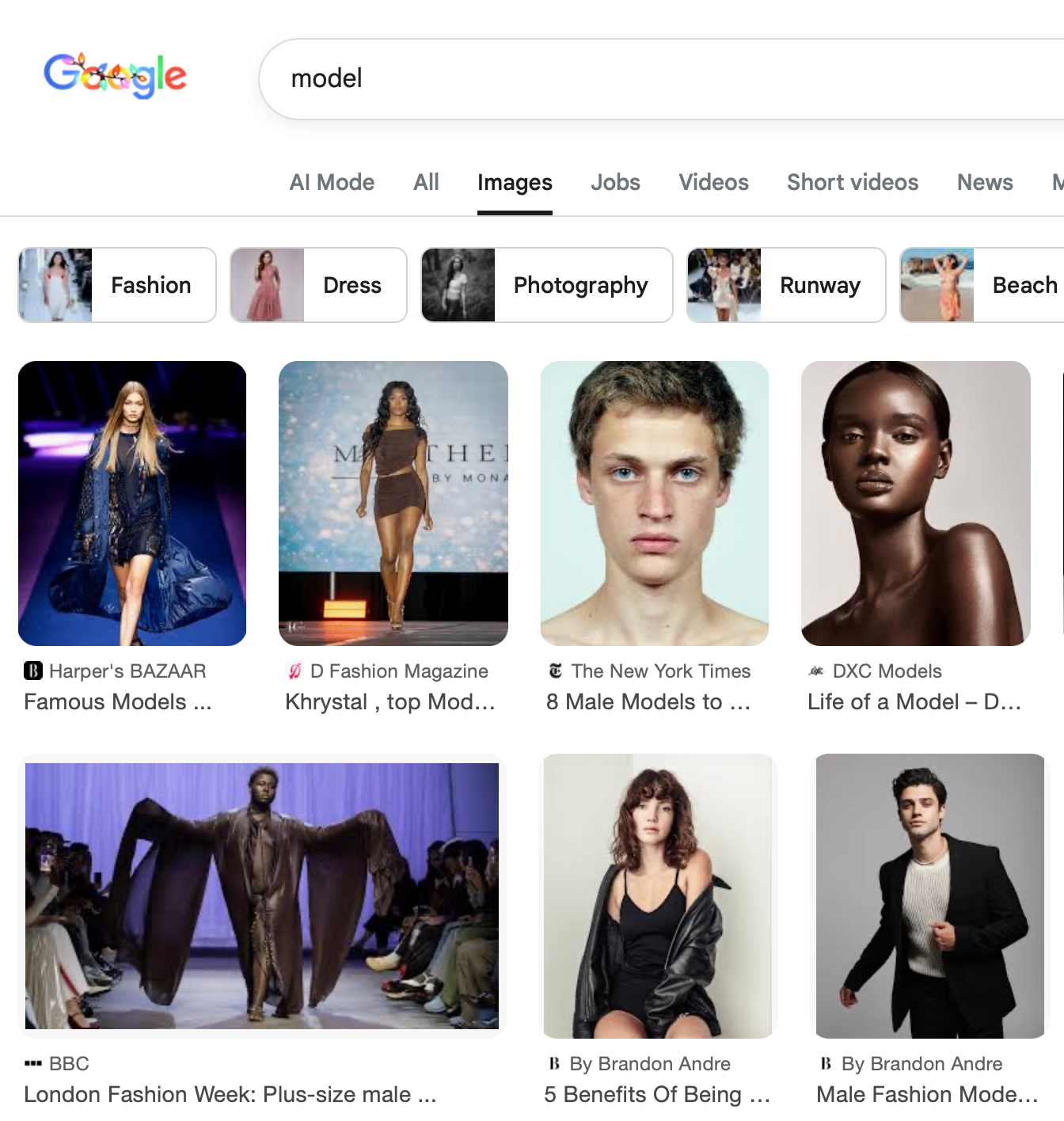 If you search for model, you will likely land on fashion models first. Photo models. People.