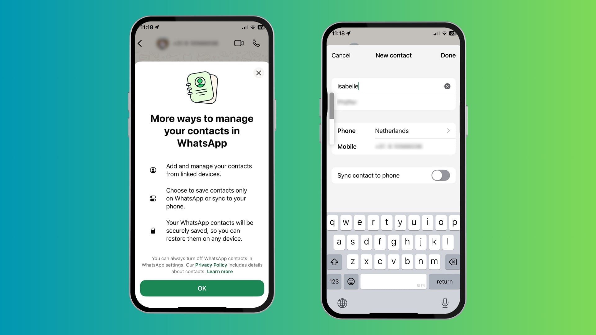 WhatsApp is rolling out a feature that lets you store contacts directly in the cloud, connected to your WhatsApp account rather than your phone’s contacts. And you can now manage these contacts across devices—including WhatsApp Web and the desktop app.