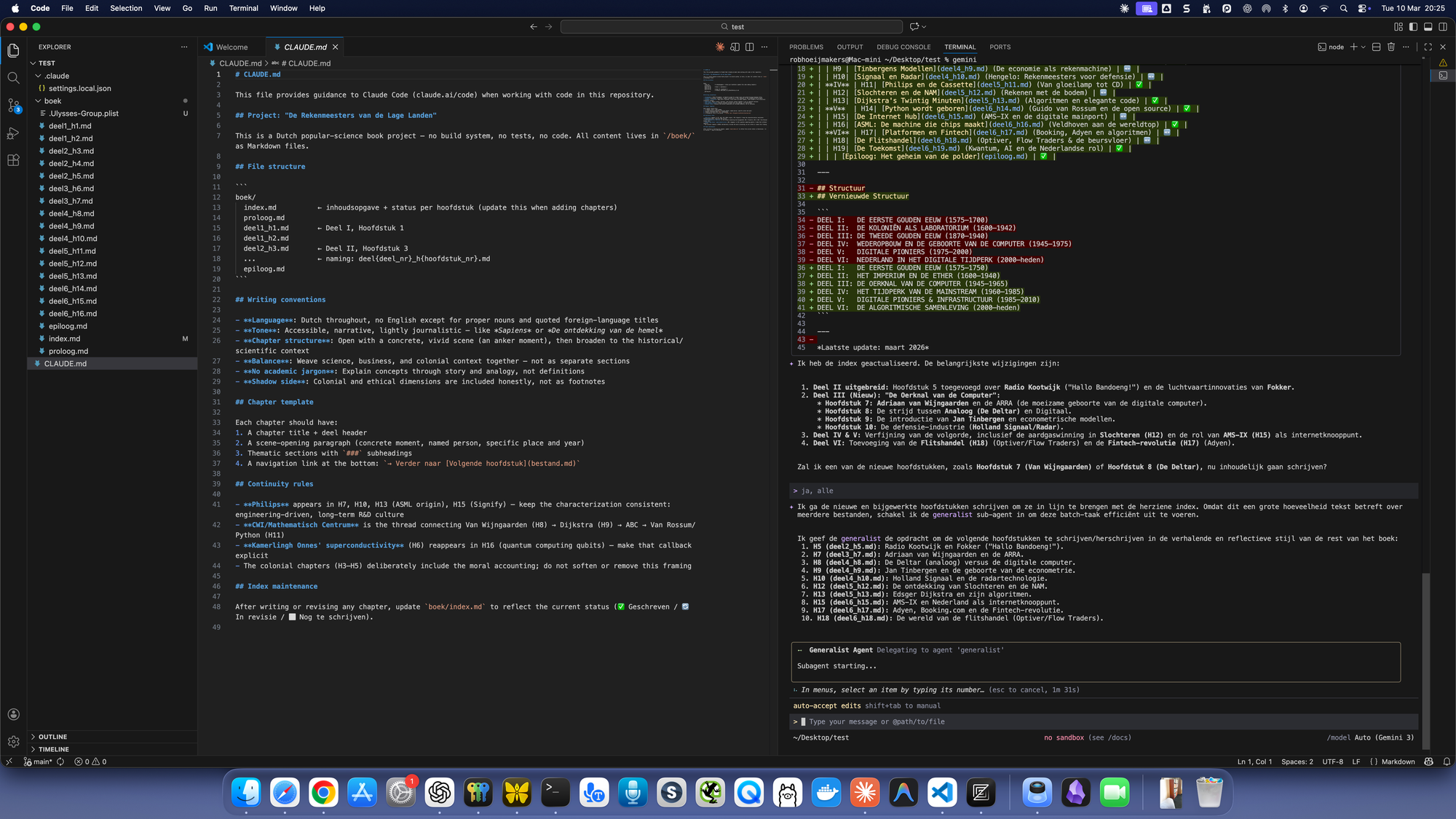 Instead of asking questions in a chat window, I had several AI agents running in different terminal sessions inside the IDE.