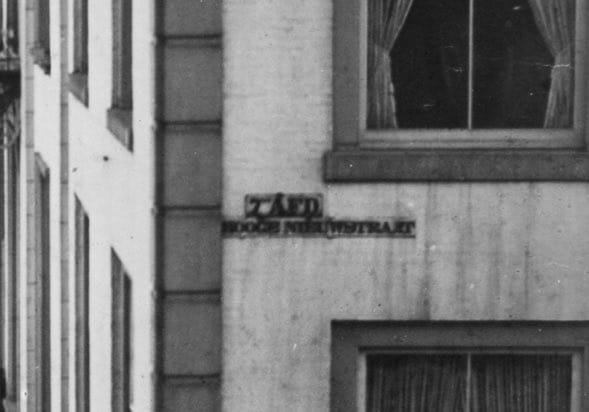 In the colourised image, the sign had become unreadable. Random glyphs, shapes that resemble letters but form no words. In the original black-and-white photograph, the same sign is still legible to a human eye. Not perfectly crisp, but recognisable.