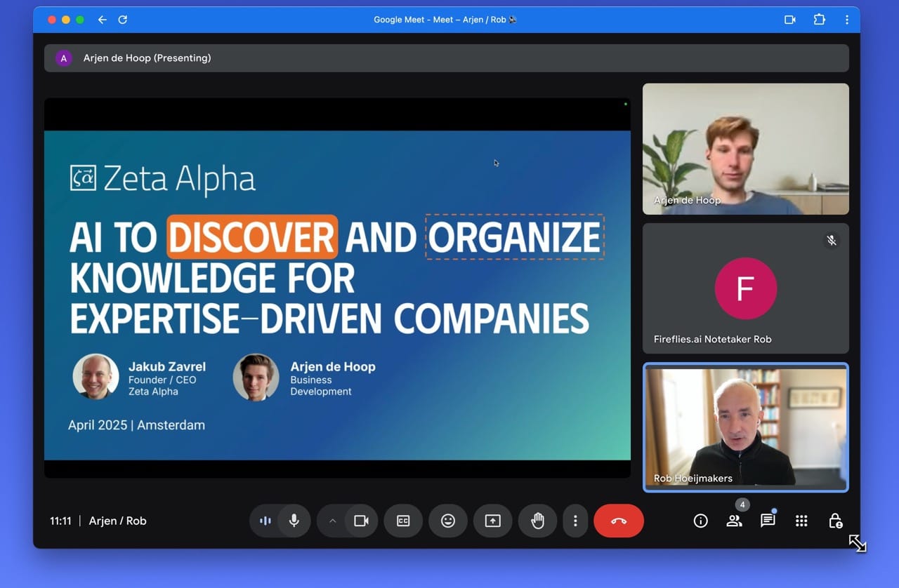 A week later, we met again in a quiet Google Meet session. Arjen had just returned from the Hannover Messe, where Zeta Alpha had drawn attention—not just on the floor, but in Frankfurter Allgemeine Zeitung.