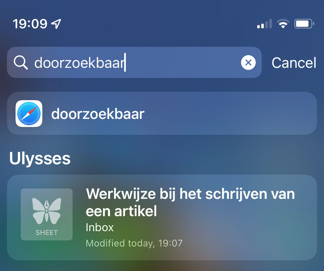 All texts I have written in Ulysses are searchable on the Mac as well as the iPhone. Both at the system level (Spotlight) but also through Ulysses itself. With this setup, I can find something quickly and also open it directly from search.