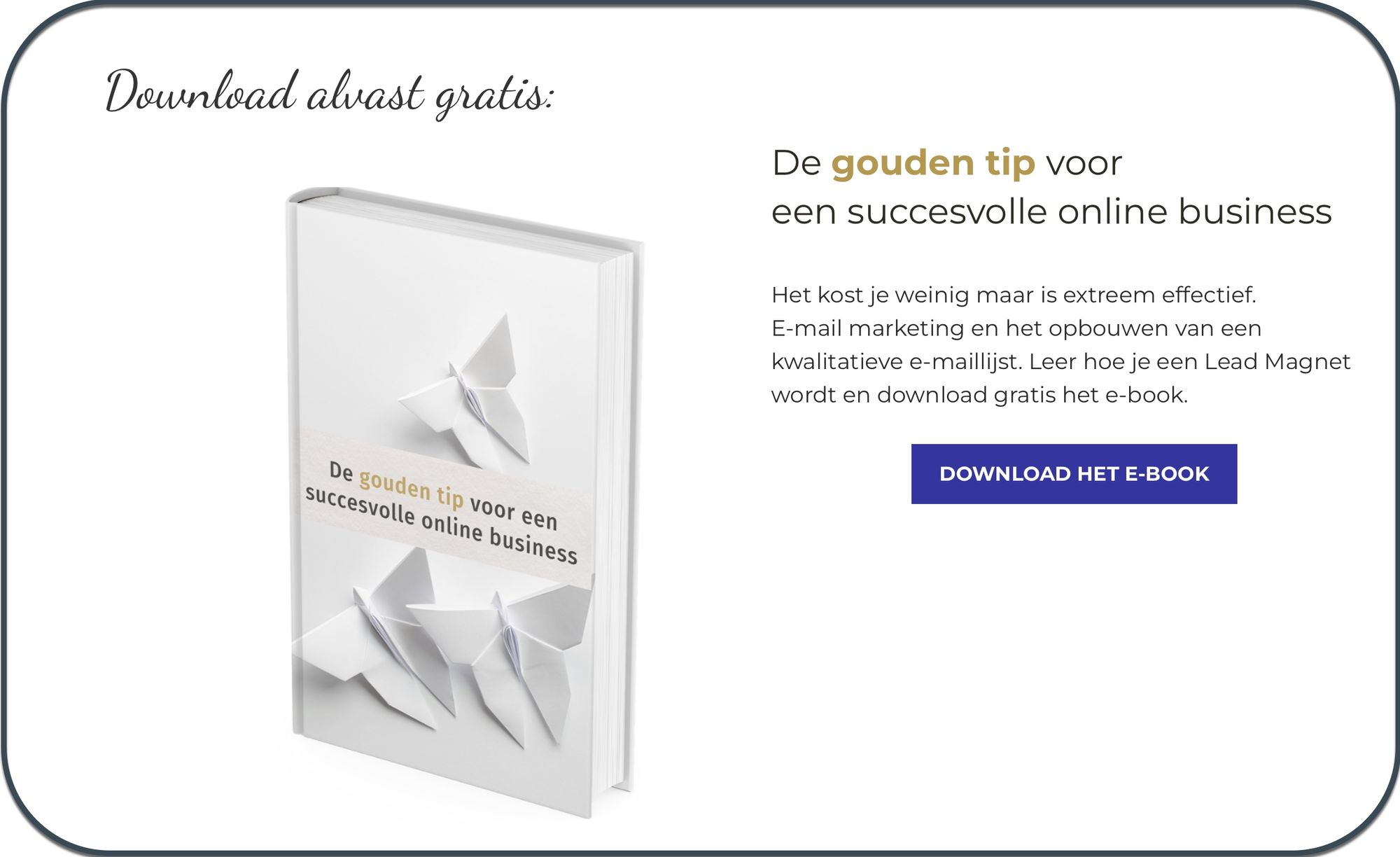 Let me give my wife and business partner's website as an example. She runs a coaching practice for business clients and for visitors to the site, she gives away an e-book. The website was created in WordPress and the Lead Magnet in ConvertKit. That programme is specifically aimed at converting a visitor to a lead.