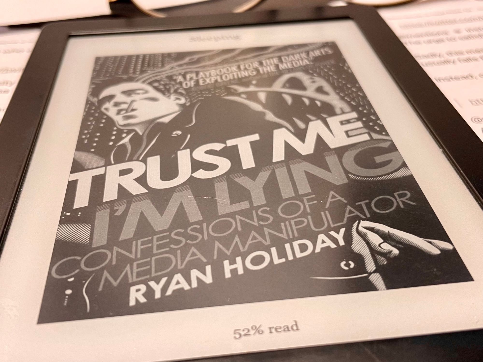 "Trust Me, I'm Lying" is a book by Ryan Holiday that explores the inner workings of the media industry and the role that media manipulation plays in shaping public opinion and driving news cycles.